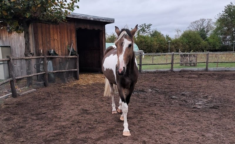 Ein einzigartiger, bunter Falke-Ruin, talentvolle und außergewöhnliche Erscheinung, 3 Jahre alt. Ein Pferd, mit dem man sowohl im Viereck als auch im Parcours glänzen kann. Bunte Falken sind eine seltene Farbvariante! #Tobiano Buckskin# Möchten Sie ein wirklich einzigartiges Pferd, das nicht nur charakterlich, sondern auch optisch und bewegungstechnisch beeindruckt? Dann suchen Sie nicht weiter! Er ist nicht nur schön, mit aufwärts gebautem Körper und drei sehr feinen, ausdrucksvollen Gängen, sondern auch charakterlich ein lebenslanger Freund! Ein liebevoller, zuverlässiger, ehrlicher und sanftmütiger Partner, der für Sie durchs Feuer geht! ANGABEN: - Geboren am 16.05.2022 - Momentan ca. 1,63 m groß, erwartete Stockmaß ca. 1,65 m - Eingetragen beim NRPS - Gechippt, geimpft, bei Bedarf entwurmt und in zahnärztlicher Kontrolle CHARAKTER: - Leicht im Umgang, Vertrauen ist ihm sehr wichtig - Sehr sensibel für die Hilfen, dadurch leicht trainierbar – perfekt für die Dressur - Anhänglich, ehrlich, zuverlässig, liebevoll, eine große Schmusebacke - Braucht eine klare, konsequente Führung, die ehrlich, geduldig, liebevoll und sanft ist. Eine harte Hand versteht er nicht, wird dann ängstlich und zieht sich zurück. - Zeigt deutlich seine Grenzen, bei Ermüdung bittet er respektvoll um eine Pause AUSSEHEN: - Eleganter, aber kräftiger Körperbau - Starke, muskulöse Hinterhand und Hals - Farblich sehr variabel: Bunter Falke (Tobiano Buckskin), seidig-glänzendes Fell, ein echtes Farbenspiel. Je nach Jahreszeit variiert die Farbnuance. - Mähne/Schweif: Volle, überwiegend weiße Mähne und Schweif, mit schwarzen Akzenten. Die Mähne ist hauptsächlich weiß, mit schwarzen und braunen Strähnen im Vorderteil. Wimpern schwarz und weiß. Bitte beachten: Das Fell erscheint auf dem Foto braun, in Wirklichkeit ist es eindeutig ein Falke! - Hervorragende Gesundheit und sehr starke Hufe! - Extrem beweglich, ideal für die Dressur BEKANNT MIT: - Vollverkehrssicher, kennt alle landwirtschaftlichen Fahrzeuge, LKWs und andere Verkehrsteilnehmer - Vertraut mit verschiedenen Tierarten - Brav bei Hufschmied, Tierarzt und Zahnarzt - Zäumungssicher, kennt das Longieren, Bodenarbeit, Natural Horsemanship, Parelli etc., liebt Schwimmen! - Vertraut mit Longe, Pessoa, Kandare, Barebackpad, Sattel, Decken und weiteren Ausrüstungsgegenständen - Derzeit wird nur Schritt unter dem Sattel geritten - Absolut geeignet für den Sport, sowohl Dressur, Springen, Vielseitigkeit als auch Freizeit - Sehr lernwillig und arbeitsfreudig - Komplette Abstammung bekannt, seit seinem sechsten Monat bei uns, alles gelernt und schon viel erlebt - Stand immer 24/7 draußen in Paddock mit Innen- und Außenstall, Sommerweidegang. Bei den beiden Pferden, die wir besitzen, ist er der „Leitwolf“ der Herde. ABSTAMMUNG: #V: Polnischer Cremello-Hengst #VM: HURO'S FANTASTIC COLOR Hengst, 2010, bunte Falbe, 1,73 m KWPN 528003201012094 1,30 m, Springprüfung Klasse ZZ-L (leicht) Bei Interesse sende ich gern eine Nachricht für die Zuchtbuch-Website. #VMM: NANDO Hengst, 1995, Schwarz, 1,64 m KWPN 528003199500961 Dressurpferd LK+55 Bei Interesse bitte Kontakt für Zuchtbuch-Website. Die Mutter ist im AES-Zuchtbuch eingetragen, ihre Vorfahren sind KWPN-Pferde, die in der Springpferdesport bis 1,70 m erfolgreich sind. Ihre Mutter und die Vorfahren mütterlicherseits sind ebenfalls KWPN, hoch im Spring- und Kutschsport. Die Mutter wird sowohl beritten als auch gezogen. Bisher wurde nur mit Schritt unter dem Sattel begonnen. Aufgrund der aktuellen Wetterlage ist die Reitbahn kaum nutzbar, daher kann momentan kein weiterführendes Training erfolgen. Er lernt alles sehr schnell und einfach. Da er noch jung ist, wollen wir nichts überstürzen. Probereiten ist aus diesen Gründen momentan nicht möglich. Er lässt sich noch vollständig nach den eigenen Vorstellungen ausbilden. Für einen Anfänger ist er daher nicht geeignet. Fotos in verschiedenen Altersstufen, vom Neugeborenen bis heute. Der Reiter auf dem Bild ist 1,75 m groß. Letzte Fotos zeigen die Eltern: Der Vater ist ein Cremello-Hengst mit blauen Augen, die Mutter ist bunt. Verkaufspreis: 6.000 € Optional: Schwarzes Leder-Dressur-Sattel zur Übernahme für 250 € sowie weitere Ausrüstungsgegenstände. Videos unter dem Sattel auf Anfrage. Besuchen Sie auch meine andere Anzeige für ein anderes Pferd. Die Pferde werden verkauft, weil wir unsere Hobby aufgeben, aufgrund von Zeitmangel. Sie behindern uns keineswegs! Wenn Sie interessiert sind und dieses wunderschöne Tier kennenlernen möchten, freue ich mich auf Ihre Nachricht! An Samstagen bin ich nicht erreichbar.