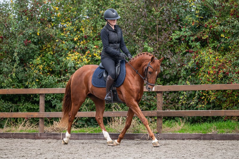 Sehr schickes 5-jähriges Dressurpony-Ruin. Le Vainqueur. Le Matsjo x Kasanova van Klaverborch. Ein äußerst liebenswertes und elegantes Pony, gemessen bei 1,43 m, aber wird noch etwas wachsen. Im letzten Jahr haben wir es ausgebildet, aktuell läuft es auf L2 mit Siegpunkt. Sehr angenehm zu reiten. Auch brav bei Ausritten im Gelände. Gute Bewegungen und läuft leicht nach Achten. Schnelles Pony, daher absolut nicht für Anfänger geeignet. Zudem besteht Potenzial als Springpony, es macht eine gute Sprungqualität. Sehr lieb im Umgang, leicht auf den Trailer zu verladen, beim Schmied und beim Scheren. Röntgenologisch untersucht und genehmigt. Videos auf Anfrage. Preis im normalen Rahmen.