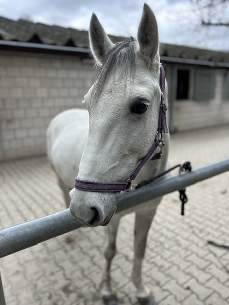 Zum Verkauf steht unsere 10-jährige Pony-Stute Katy, die seit zwei Jahren bei uns im Schulbetrieb läuft. Für diesen ist sie jedoch etwas zu sportlich, sodass vor allem unsere fortgeschrittenen Reiter viel Freude mit ihr haben, ganz ausgelastet ist sie bei uns aber nicht. Daher wünschen wir uns für sie ein förderndes Zuhause in privaten Händen. Katy überzeugt mit viel Motivation, Freude und erkennbarem Talent am Sprung. Sie steht hier noch am Anfang ihrer Ausbildung, wird aktuell weiter gefördert und bringt gute Voraussetzungen für den Springsport mit. Sie ist durchgeimpft, regelmäßig beim Zahnarzt gewesen und gesundheitlich ohne Einschränkungen. In der Herde ist sie verträglich und steht täglich mit anderen Stuten auf dem Paddock oder der Koppel. Im Umgang und unter dem Sattel zeigt sie gelegentlich ihren Stutencharakter, bleibt dabei aber gut händelbar. Als Anfänger oder Kinderpony würden wir sie daher allerdings nicht bezeichnen, für ambitionierte Reiter jedoch ein tolles Pony mit Perspektive.