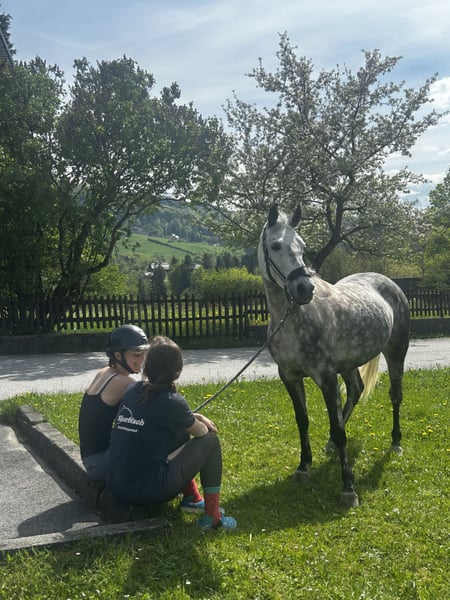 Wir verkaufen unsere liebe "Bettina“. Betti ist ein 11-jähriges Niederländisches Reitpony (Apfelschimmel, 147 cm) In den letzten drei Jahren durfte Bettina mit mir Erfahrungen in zahlreichen Bereichen sammeln, von Wanderreitwochen, Ausritten auch ohne Sattel, viel Bodenarbeit und zahlreichen Ausflügen bis hin zur Dressurarbeit und Springturnieren. Überall zeigte sie sich stets engagiert, aufmerksam und feinfühlig. Sie ist leicht an den Hilfen und hat drei sehr gute Grundgangarten. Mit ihrer feinen Art eignet sie sich besonders gut als Jugend- oder Damenpferd, ist allerdings aufgrund ihrer Sensibilität nicht für kleine Kinder oder Anfänger geeignet. Betti lief in der Vergangenheit auch ab und zu im Reitschulbetrieb und kann problemlos von Jugendlichen ab Nadelniveau geritten werden. Für ambitionierte Freizeitreiter ist Betti ein Traum!! Ebenso ist Bettina als Zuchtstute eingetragen. Ihre Abstammung ist hervorragend: (V: Quettino de Florys; MV: King Kalido-B) Betti war in der Vergangenheit mehrfach im Springen unterwegs und siegreich bis zu A*-Springen. Sie verfügt über das Talent, zeigt sich jedoch im Springsport nicht mit der gleichen Begeisterung wie in anderen Bereichen. Deshalb wünschen wir uns für sie ein Zuhause, in dem Turnier- oder Springsport nicht im Vordergrund steht. Hinweis: Bettina koppt, es beeinflusst jedoch weder ihre Gesundheit noch ihre Leistung. Wir geben Betti nur schweren Herzens ab, da ihre Reiterin auf ein Großpferd umsteigt. Umso wichtiger ist es uns, dass sie in die besten Hände kommt, wo sie geschätzt und gefördert wird. Keine Händler!