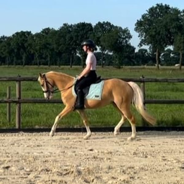 Daantje, un très gentil poney palomino Faites connaissance avec Daantje, une jument palomino de 3 ans avec 4 jambes blanches (grand poney C). Elle se montre très fiable, a un caractère très posé et aime apprendre ! Elle prend également plaisir à faire des sauts. Avec son caractère adorable, Daantje devient vraiment un poney idéal pour les enfants ! Contact - Téléphone : 06-31528273 - Localisation : Nord-Limbourg Si vous êtes intéressé ou avez des questions, n'hésitez pas à nous contacter. Nous attendons votre message avec impatience !🐴⭐️