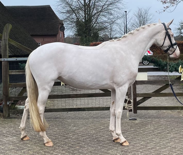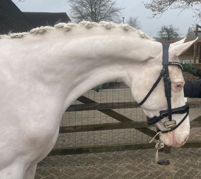 🐴 Celina du Bois (v. Davinci du Bois) Half zusje van Cassanova du Bois, Goldstar du Bois en Ducati du Bois, direct uit de welbekende Du Bois fokkerij, het beste van het beste! 🤩🏆 Een pony waar iemand veel prijzen mee gaat winnen! Bloedmooie 4 jarige NRPS e-pony: - Merrie - Meet +- 1,53 m - Cremello - Geboren 09-04-2022 - Davinci du Bois x dezelfde moeder als Cassanova du Bois, Goldstar du Bois & Ducati du Bois (Der Harlekin B x Condor ox) - Zadelmak - Geen gebreken Celina du Bois is een hele lieve en knappe NRPS merrie met zeer veel potentie voor de sport en fokkerij. Ze heeft een super lief karakter en is rustig in de omgang. Ze heeft 3 zeer goede en correcte gangen. Ze is zadelmak, waarbij ze heel braaf haar rondje doet, maar vanwege tijdsgebrek moet ze wel nog wat verder doorgereden worden, dus nog niet geschikt voor beginners. Celina heeft een uitzonderlijk goed papier. Haar vader is Davinci du Bois, die met zijn pas 9 jaar al Z-dressuur loopt. Hij was de kampioen van de hengstenkeuring in 2019 en later weer kampioen in 2021. De moeder van Celina is ook geen onbekende, Carice du Bois. Zij is eveneens de moeder van de bekende hengsten Cassanova du Bois, Goldstar du Bois én Ducati du Bois! Een beter papier kan dus bijna niet! Dit maakt Celina du Bois daarom ook uitzonderlijk interessant voor de fokkerij! Celina is braaf in de omgang, bij de hoefsmid, in de trailer e.d. Ontwormingen, vaccinaties en tandarts zijn in orde. Al met al een hele lieve en fijne merrie met veel kwaliteit en hoge verwachtingen voor de hoge sport en fokkerij. Ook interessant om mee naar de merriekeuring te gaan. Een pony waar je dus nog alle kanten mee uit kan! Voor een video graag zelf even een whatsapp sturen naar +31612090029. Bij interesse graag een bericht of een appje/belletje naar +31612090029. Bellen gelieve na 17:00 uur.