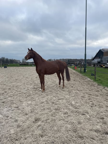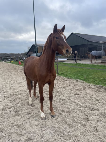 Mooie jonge merrie aangeboden, nu 3,5. Ze is nog helemaal naar eigen hand te zetten en groen. Loopt braaf mee aan een halster. Helaas ontbreekt het mij echt qua tijd om lekker met haar aan de gang te gaan, wegens jong gezin en andere paarden. Met pijn in mijn hart heb ik besloten of ik een andere plek voor haar kan vinden, waar ze wel rustig opgepakt kan gaan worden. Het is een hele vriendelijke en nieuwsgierige merrie, wil graag wat ondernemen, maar ze heeft zeker wel karakter. Ze heeft ook een mooi papier, dus ook zeker interessant voor de fokkerij. Op dit moment is ze ongeveer 1.60, maar ik verwacht dat ze nog wel aardig gaat groeien (ook aldus dierenarts/ostepaat). Filmpjes volgen nog.