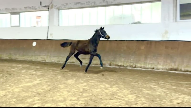 Este potro de semental excepcional ya ha sido destetado y está listo para mudarse a un nuevo hogar. Aquí está creciendo una verdadera promesa de cría, ya sea como futuro semental o como posible atleta de alto nivel. Gracias a su belleza y calidad, tiene todas las puertas abiertas para su futuro en la doma o en el deporte.