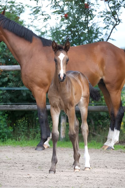 For sale is this extraordinary colt by Escamillo x Benicio x Lauries Crusador, born in June 2025. The mother, Buena Vista, comes from the Oldenburg line 77 of Feldgold. In the competition year 2021, she was placed multiple times in riding horse tests and dressage horse tests of class A. In 2021, she completed the mare performance test (OL) and received, in addition to the main premium eligibility (State Premium), an invitation to the elite mare show in Rastede. In the competition year 2022, she was placed multiple times in dressage horse tests of class A and L. Siblings of the mare (from the mother Luise): Full brother Ben Vito (2013) by Benicio x Lauries Crusador has already won at S level at the age of seven and was a German reserve for the World Championship of Young Dressage Horses in Ermelo 2019 at the age of six. He himself was qualified multiple times for the Bundeschampionat and is a flagship of his father Benicio. Placed in St. Georg, won S*, placed in dressage horse M, won dressage horse L. Donna Clara (2008) by Don Frederico x Lauries Crusador is already successful at S level. Placed in Inter I, won M** dressage, placed in dressage horse M, won dressage horse A. Doktor Bee (2012) by Destano x Lauries Crusador is successful in the heavy class. Placed in Inter I, won M** dressage, placed in dressage horse M. Location: Hude (Oldenburg)
