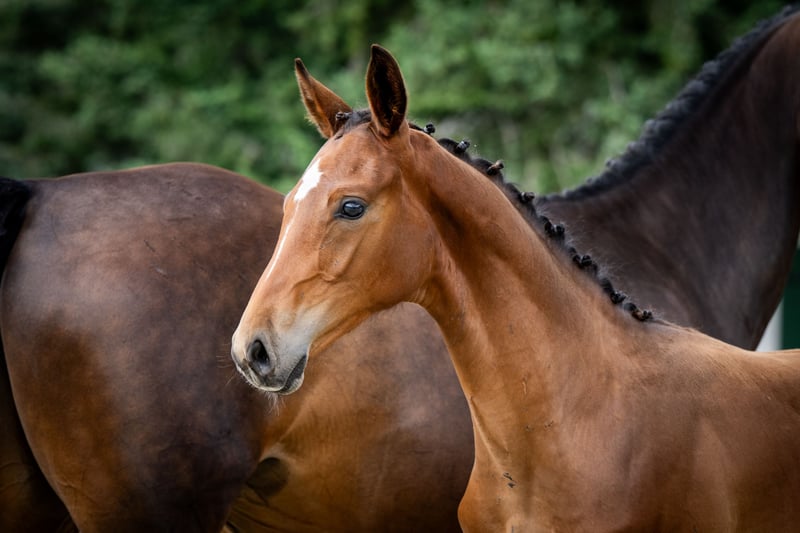 Ein sehr hübsches, einjähriges Hengstfohlen, im Stall geboren. Er ist gut erzogen und menschenfreundlich.