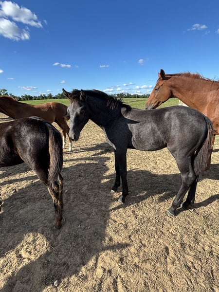 Bondolino impresses with three very good basic gaits, a correct conformation with a nicely angled hind leg, and an expressive neck. He is personable, balanced in temperament, and consistently friendly and easy to handle in daily interactions. His development is progressing positively for his age, with excellent prospects for sport or breeding. Due to his outstanding type and fluid movement, he was awarded premium foal status by the Oldenburg Verband. Bondolino comes from a performance-oriented bloodline – his granddam, Touch my Soul, was a real eye-catcher and also carried the grey coat. The young stallion is being offered for sale solely for private reasons and due to herd reduction.