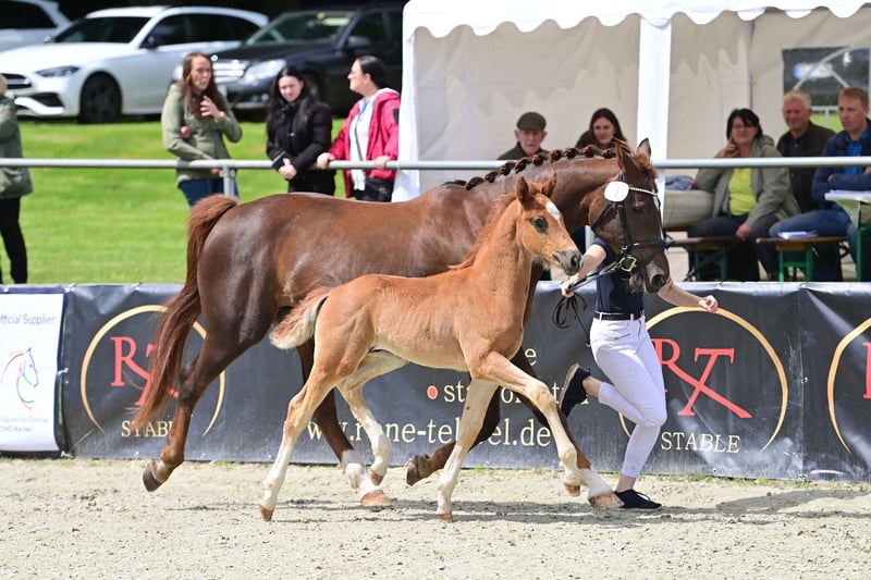 Der junge Mann hat einen super aufgeschlossenen Charakter ist sehr zutraulich und menschenbezogen. Er ist sehr neugierig aber auf angenehme Art vorsichtig und nicht zu aufdringlich , was den Umgang mit ihm sehr einfach macht und somit auch viel Spaß. Schritt, Trab und Galopp sind außergewöhnlich. Alle Nachkommen der Mutter sind Mega rittig und wollen wirklich arbeiten. Mehrere sind schon ins Ausland verkauft worden. Inzwischen hat er so richtig mit dem Fellwechsel begonnen und wird richtig dunkel, der Schweif scheint bisher wie beim Papa zu werden innen dunkel außen blond Über den Mutterstamm: Die Mutter ist eine Elitestute von Fürst Piccolo x Weltmeyer. Ich habe sie als Fohlen gekauft und selber ausgebildet, Sie wurde als Jungpferd mit 9er Noten im Trab bewertet und hat Dressurpferde A mit 8er Noten gewonnen. Ebenso war sie Siegerin ihrer SLP und in dem Jahr beste 3 jährige Stute in Westfalen. Ein Halbbruder ist gekört. Erfolgreiche Nachzucht ist vorhanden und 2 Halbgeschwister können vor Ort angesehen werden.