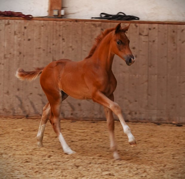 RPZ Dreamcatcher is a beautiful young stallion with excellent movement potential and a great character. His dam Bella Rouge RPZ comes from the famous Oldenburg Blankenese line. His sire DSP Dream Royal was a licensing and stallion performance test winner with a dream score of 10 for rideability and was also a placed Bundeschampionat finalist.