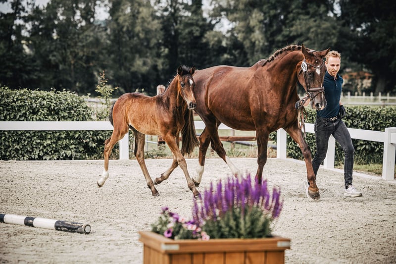 Zum Verkauf steht ein sehr typvoller 2- jähriger Hengst von Zoom aus einer Fit For Fun x Donnerhall Mutter. Die Mutter der Mutterstute ist die Vollschwester zu Don Schufro. Zeitgeist hat mehrere Vollgeschwister, die alle erfolgreich im Sport unterwegs sind. Ein 4 - jähriger Vollbruder ist im Besitz einer sehr bekannten Influencerin und entwickelt sich hervorragend. Zeitgeist ist ein sehr großrahmiges und langbeiniges Pferd mit sehr guten GGA, wobei man den Schritt besonders hervorheben muss. Zeitgeist ist klar im Kopf, brav im Umgang sowie halfterführig, schmiede- und verladefrom. Unter besten Voraussetzungen aufgewachsen, steht ihm für den weiteren Lebensweg alles offen. Auch für Hengstaufzüchter ist Zeitgeist interessant. Alles weitere gerne persönlich unter 01749753262