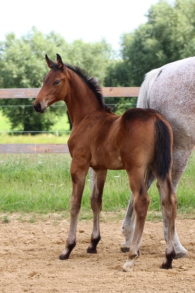 Opvallend mooi veulen. Diamant de Semilly x Galan x Ahorn Z x Calypso Uit internationale S succesvolle moeder ! Een absolute blikvanger - mooi, opvallend gebouwd bergop en voorzien van levendige gangen. Deze zeer interessante jonge atleet van Diamant de Semilly laat niets te wensen over. Hij combineert een gegarandeerde sportafstamming met edel bloed. Hij komt uit een 1.45m internationaal succesvolle merrie, de grootmoeder is 1.40m succesvol en verdere broers en zussen van deze merrie zijn 1.40m-1.50m succesvol. Zijn internationaal succesvolle moeder bracht eergisteren een Oldenburgs veilingveulen en vorig jaar nog een elitemerrieveulen. Ook zij schittert met een zeer prettig en sociaal karakter, dat ze doorgeeft aan haar veulens. Alle deuren staan voor hem open in de sport en ook voor hengstenhouders zou hij een investering in de toekomst zijn. "Dienstag" is slim, moedig en zelfverzekerd. Hij is mensgericht en goed gesocialiseerd. Alle veulens groeien bij ons op met een familieband, kennen landbouwmachines, honden, geiten en katten en worden in een kudde op grote weiden gehouden. Inruil, ruil of betaling in termijnen zijn uitgesloten. Rechtstreeks van de fokker Plaats 17166, MV