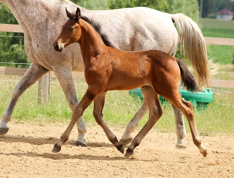Uderzająco piękny ogierek. Diamant de Semilly x Galan x Ahorn Z x Calypso Po matce odnoszącej sukcesy na arenie międzynarodowej! Absolutnie przyciąga wzrok - piękny, efektownie zbudowany pod górę i wyposażony w żywe chody. Ten niezwykle interesujący młody sportowiec po Diamant de Semilly nie pozostawia nic do życzenia. Łączy w sobie pewny sportowy rodowód ze szlachetną krwią. Pochodzi od odnoszącej międzynarodowe sukcesy klaczy 1.45m, jej babka odnosi sukcesy na poziomie 1.40m, a dalsze rodzeństwo tej klaczy odnosi sukcesy na poziomie 1.40m-1.50m. Jego odnosząca międzynarodowe sukcesy matka dała rok wcześniej źrebię na aukcji oldenburskiej, a w zeszłym roku kolejne elitarne źrebię. Odznacza się również bardzo miłym i towarzyskim charakterem, który przekazuje swoim źrebiętom. Wszystkie drzwi w sporcie stoją przed nim otworem, a dla hodowców ogierów byłby także inwestycją w przyszłość. "Dienstag" jest bystry, odważny i pewny siebie. Jest zorientowany na ludzi i dobrze zsocjalizowany. Wszystkie źrebięta dorastają z nami w rodzinnej atmosferze, znają maszyny rolnicze, psy, kozy i koty i są trzymane na ogromnych pastwiskach w stadzie. Handel, wymiana lub płatność w ratach nie wchodzą w grę. Bezpośrednio od hodowcy Lokalizacja 17166, MV