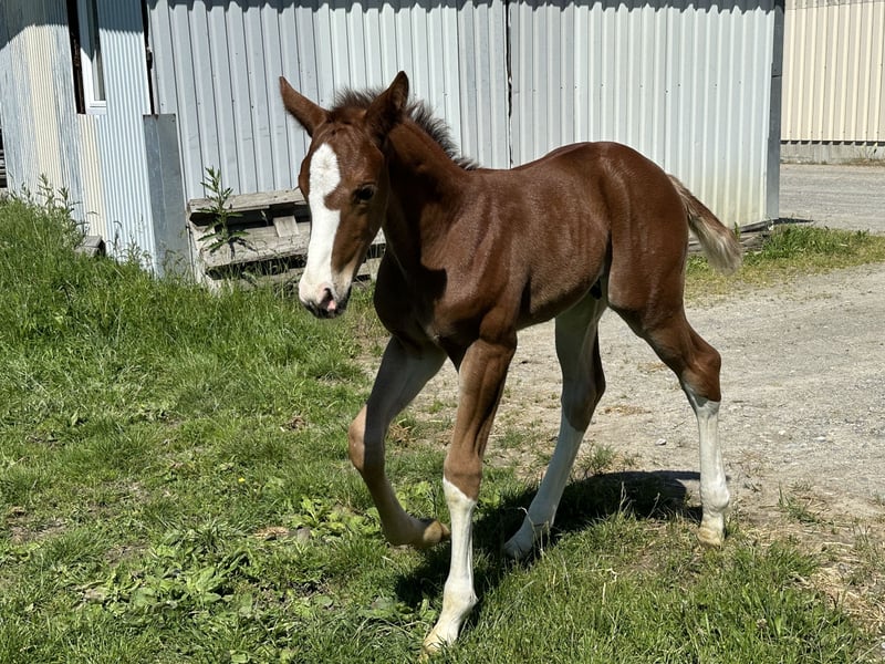 Directamente del criador; ¡¡¡Hermoso potro correcto con chaqueta colorida, mucho cuello y mucho movimiento por el mejor semental Cellaho's Benicio !!! Siempre muestra mucha expresion, buen paso, trote vivo con bastante mecanica y un galope cuesta arriba fantastico. Una oferta para todo criador de sementales o jinete de doma. Como todos los hijos de su madre, tiene una cabeza absolutamente clara con una gran tendencia a subir y, como todos sus hijos, tiene una facilidad para montar por encima de la media. Su hermano se vendió como semental. La abuela materna (Stedinger x Rohdimant) fue una ganadora en serie en deporte y colocada hasta nivel medio así como 3/4 hermana salida de la misma madre como SAM OLD que ya fue ganadora de Gran Premio a la edad de 7 años. No hace falta decir nada más sobre el padre Cellaho's Benicio. El campeón de Alemania y semental de Gran Premio por Belissimo está estacionado en la estación de sementales Beckmann.