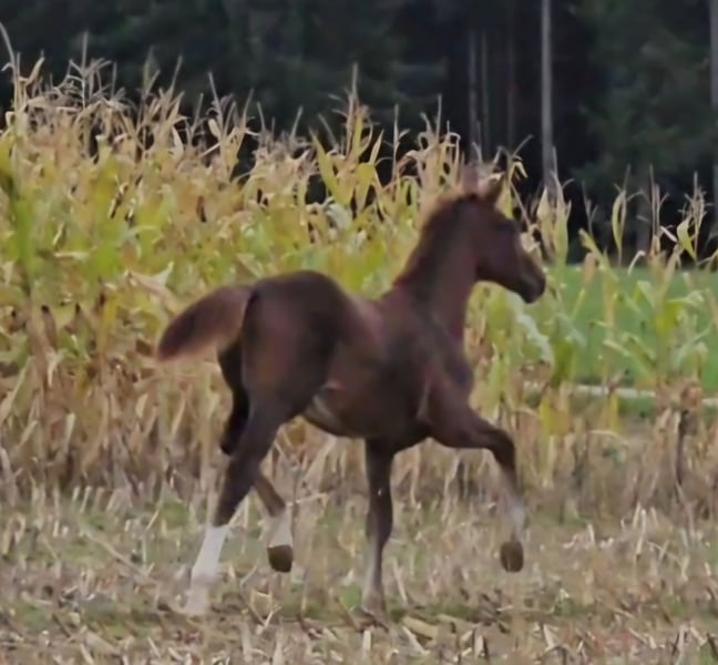 Magnifique type d'étalon ! Excellentes allures souples, super galops en montée. L'étalon devient très grand ! Né le 1.5.24.