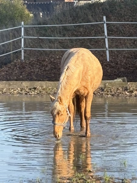 **Sales Advertisement: Dreamy Oldenburg Stallion for Sale** We offer an exceptional Oldenburg stallion for sale, born in 2023. This beautiful Palomino captivates not only with his striking appearance but also with his promising potential in dressage. **Features:** - **Breed:** Oldenburg - **Gender:** Stallion - **Year of Birth:** 2023 - **Color:** Palomino - **Height:** 170 cm - **Suitability:** Dressage The stallion is distinguished by his excellent movements and charming character. He is well-mannered, has already acquired basic knowledge, and shows great talent for dressage. This stallion is ideal for ambitious riders looking for a promising horse for the future. If you are interested or need further information, please feel free to contact me. From this lineage come auction horses as well as sport-successful Inter I and Grand Prix horses. Don’t miss this opportunity and schedule a viewing appointment! More horses available on-site, from foals to finished riding horses. Feel free to call 015144548149.