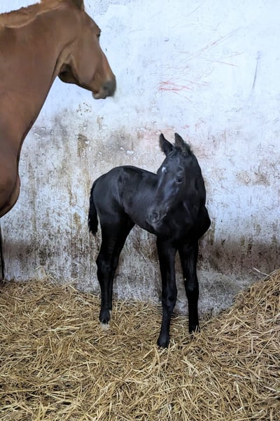 Pepito is een heel slim, lang type veulen met zeer goede gangen. 4X wit, klein korthaar en snip. Hij is halstertrainer, heeft een geweldig karakter, is erg sociaal en nieuwsgierig. Hij kan zijn grootvader PAINTED BLACK niet verloochenen. Details van de moederlijn: St.Pr.St. Wega, heeft al verschillende nakomelingen voortgebracht die succesvol hebben deelgenomen aan dressuurwedstrijden op gevorderd (S) niveau tot en met Grand Prix niveau.
