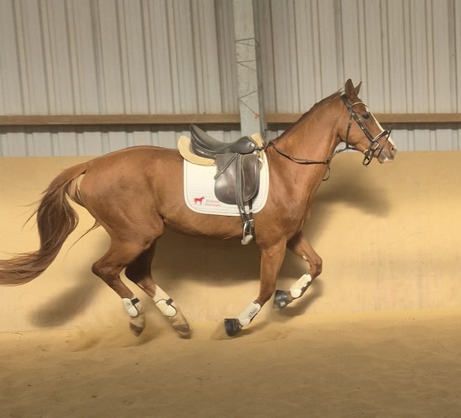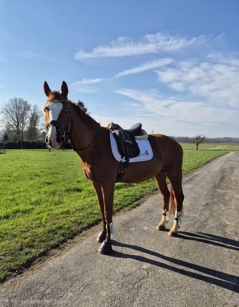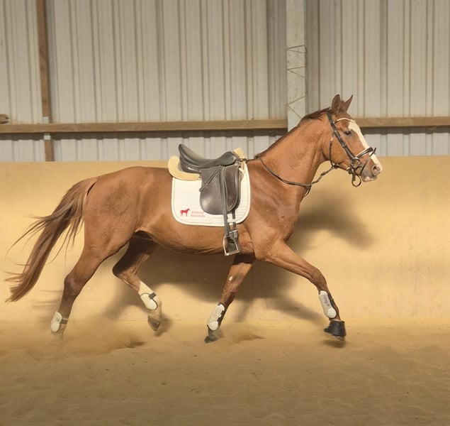 Verkauft wird hier ein Fast 4 Jähriger Oldenburger hengst . No name ist ein 2022 Geborener Oldenburger Hengst ca.168 cm v. Total Hope, Mette Marit, Totilas, sir Donnerhall Moonlight ,weihegold. No name ist ein total artiger Hengst mit hervorragenden GGA . Derzeit angeritten in den GGA. Er ist super sitzbequem. Mit einem super gemüht immer artig weiß nicht das er Hengst ist . Durch seine GGA ist er für den Sport bestens geeignet. Ist vorne Beschlagen regelmäßig geimpft, sowie Entwurmt Eine Aku kann natürlich gemacht werden auf Wunsch vom Käufer. Eine Besichtigung sowie Probereiten ist möglich. Bei weiteren Fragen stehe ich gerne zu Verfügung . 0173-9022834