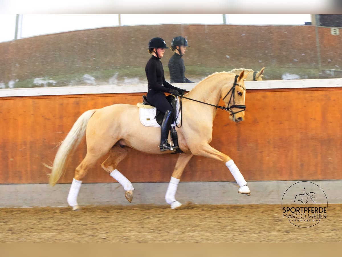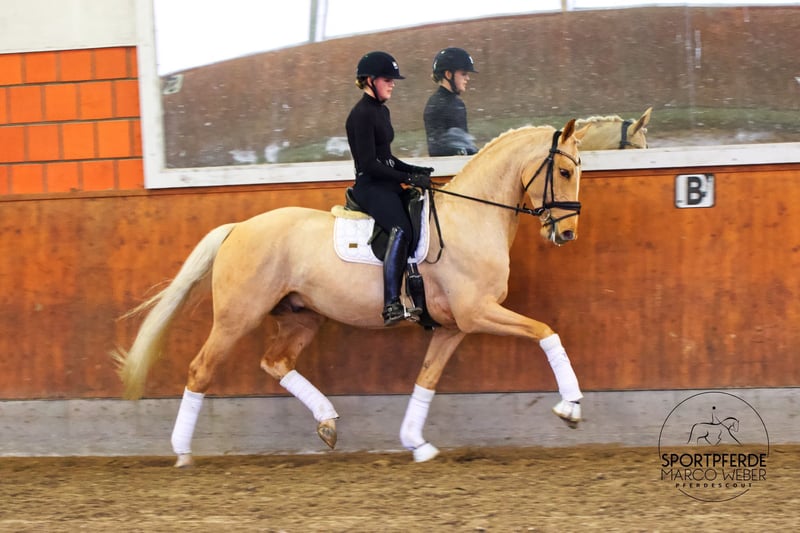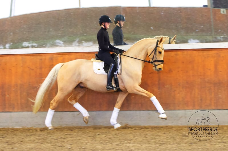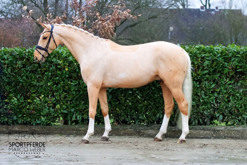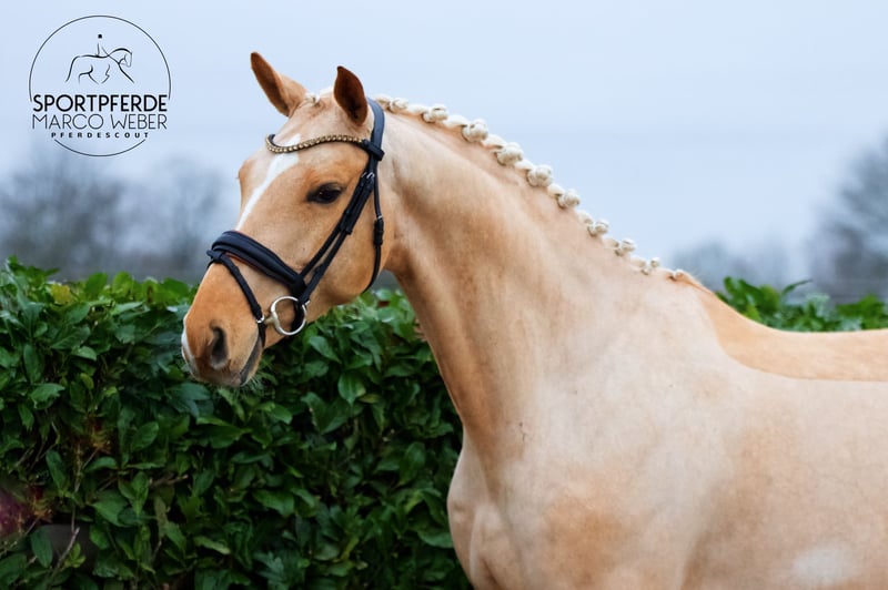 Oldenburg Gelding, born 2020, approximately 16.1 hh ⚜️ Zafferano x Fürst Nymphenburg ⚜️ 💎 Highly modern Palomino dressage horse with outstanding rideability, excellent temperament, and a clear potential for the big arena 💎 This expressive Oldenburg gelding impresses not only with his sporting quality but also with his rare and highly sought-after Palomino color. His heart beats loudly – he convinces with honesty, willingness to perform, and genuine joy in working with his rider. He descends from the promising Zafferano, known for modern type, elasticity, and excellent conformation. Through Fürst Nymphenburg on the dam’s side, proven rideability, submission, and athletic performance are firmly established – an absolutely convincing dressage pedigree. The gelding was deliberately backed at an age-appropriate and gentle pace to give him ample time for physical development. This approach has clearly paid off: he now presents himself as balanced, clear-minded, and with a very positive work attitude. He has already demonstrated his sporting potential: winner in Dressurpferde-L – showing confidence, suppleness, and a lot of overview. Over the winter, a gentle transition to lateral work will be introduced, further enhancing his prospects for advanced training. Thanks to his exceptionally balanced character and high rideability, he is also very suitable for less experienced or nervous riders. He provides security, remains honest and reliable at all times – a horse you can always count on. In handling, he is also completely uncomplicated: friendly, human-oriented, well-mannered, and reliable – a horse you enjoy bringing out of the stable every day. His exterior is modern and correct, with harmonious conformation and solid foundations. A true sport horse with potential – suitable for both ambitious amateurs and professionals. 🧬 Pedigree: Zafferano x Fürst Nymphenburg 🎨 Color: Palomino (rare) 📏 Height: approx. 16.1 hh 🏆 Sport: Winner in Dressurpferde-L 🩺 TÜV: Very good TÜV including back available 📍 Location: near Hamburg ➡️ Directly from the breeder 📞 Contact & further information: +49 173 3013499