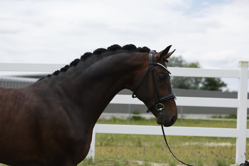 Furore Fantastico – koń, który w pełni zasługuje na swoje imię. Urodzony w 2020 roku w Oldenburgu, ten wyjątkowy ogier przeszedł wszystkie testy wydajności z ocenami znacznie przekraczającymi 8. W 2024 roku zyskał uznanie na Kronberghof, wygrywając kwalifikację do Mistrzostw Niemiec, a od tego czasu nieustannie odnosi sukcesy – od konkursów na poziomie M po S w dyscyplinie ujeżdżenia. Już w tym roku zdobył zwycięstwa w konkursach dla młodych koni w kategorii S, co wyraźnie potwierdza jego ogromny potencjał na wielką scenę. Jego szkolenie zawsze przebiegało zgodnie z wiekiem i możliwościami, co odzwierciedla się w jego ujeżdżalności oraz szczerym, ambitnym charakterze. Furore Fantastico zachwyca nie tylko wybitnym talentem do ruchu i ekspresją, ale także charyzmatyczną aurą, która na każdym turnieju zapewnia mu sympatię sędziów i publiczności. To koń, który zdobywa serca – zarówno na arenie, jak i w stajni. W codziennym treningu wykazuje się wysoką motywacją, niezawodnością i łatwością w pracy. Jest spokojny przy czyszczeniu i załadunku, a jednocześnie odporny na stres i chętny do pracy, co czyni go partnerem, który każdego dnia chce dawać z siebie wszystko. Koń, który łączy wszystko: typ, talent, charakter – i to coś wyjątkowego, co wyróżnia zwycięzców. Aktualne zdjęcia RTG są dostępne i oczywiście bez żadnych uchybień. Furore Fantastico znajduje się w pobliżu Wiednia i może być obejrzany w każdej chwili. Filmy będą wysyłane wyłącznie po telefonicznym wstępnym kontakcie.