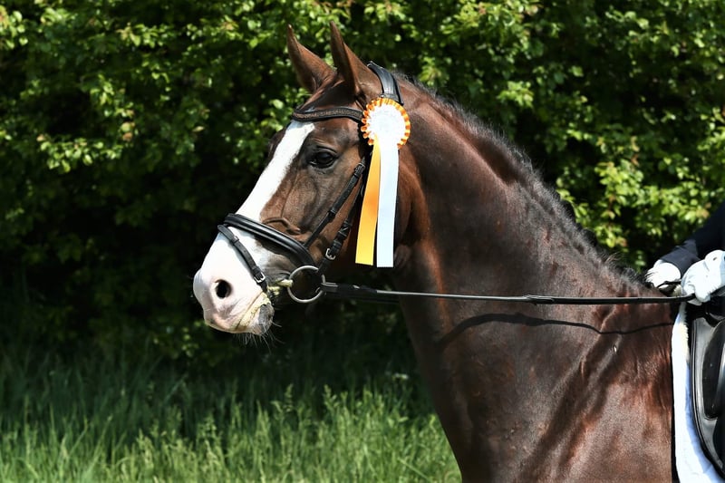Ein Traumhengst in Choccofuchs mit viel weiß Er ist 2017 geboren, 1,74m groß und mehrfach M* siegreich und M** platziert (2.Platz). Er beherrscht schon einige S Lektionen Es ist eine Freude ihn zu reiten. Bei ihm kommt viel Kraft von hinten und alle 3 GGA sind überragend. Taktsicherheit, Schwung, Bergaufvermögen, Leichtrittigkeit und aller bester Charakter...er ist als Hengst super zu händeln und totalbrav..auch auf dem Turnier.