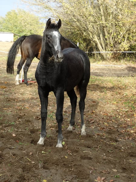 Lovely, well-handled Oldenburg colt raised in a family environment. Excellent temperament, straight legs, expressive movement. Excellent pedigree, ideal for sport or breeding purposes. He carries top-class performance bloodlines suitable for both show jumping and dressage. Port of Zenith combines the rideability and elegance of the Rascalino line with the power and athleticism of Hickstead’s bloodline — a rare mix that ensures both scope and refinement. He is calm, easy to handle, and quick to learn, showing a naturally balanced and ground-covering movement in all three gaits. Raised with care, he is well socialized, handled daily, and developing exactly as one would expect from his exceptional pedigree. Perfect candidate for show jumping, dressage, or eventing, and equally suitable for breeders seeking quality Oldenburg bloodlines with proven international performance heritage.