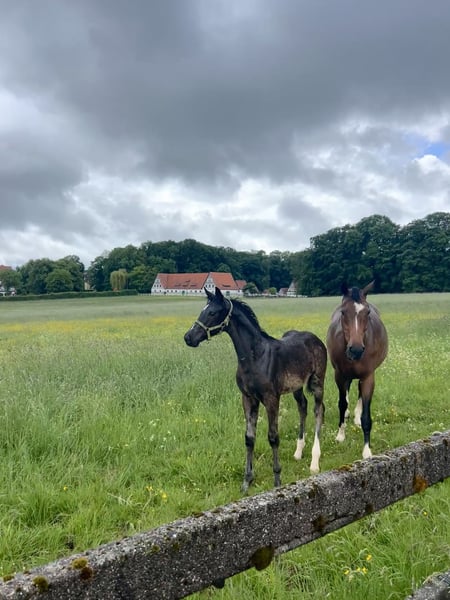 Issu de notre propre élevage, ce joli et sportif hongre noir est à vendre. Son père, Escanto, se distingue non seulement par son pedigree intéressant mais aussi par ses succès sportifs, ayant été couronné champion national l'année dernière. De plus, ses nombreux descendants sont très prometteurs. La mère, Escada, a reçu la prime d'élevage (prime d'état allemande) aux Pays-Bas après avoir concouru jusqu'au niveau L, et son premier poulain a été directement couronné poulain champion. Elle-même et ses descendants portent le label D-OC, c'est-à-dire qu'ils sont génétiquement exempts de chips articulaires. Le poulain est manipulé quotidiennement depuis sa naissance et connaît donc le travail en main, l'attache, le pansage, la douche, le parage et tout ce qui fait partie de la vie quotidienne. Il est déjà sevré et pourrait déménager immédiatement. Bien sûr, il a été régulièrement vermifugé et a été chez le maréchal-ferrant. Il n'y a pas d'autres vidéos, le poulain peut être vu à tout moment.