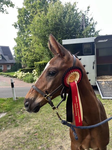 Zum Verkauf steht dieses am 27.05.2025 geborene Typvolle Fohlen von For Dior x Floriscount x De Niro x Caprimond. Dieses Fohlen wurde auf dem Fohlenchampionat in Emsbüren mit der Fohlenprämie ausgezeichnet. Dort zeigte er sich sehr elastisch mit drei tollen Grundgangarten, besonders wurde der Schritt und der Knie und Raumgriff hervorgehoben. Videos von dem Fohlenchampionat sowie von den Halbgeschwistern unterm Sattel können gerne verschickt werden. Die Stute lief selber Dressur bis zur Klasse M. Das Fohlen wird aufgrund von Platzmangel in fördernde Hände abgegeben. Er ist kerngesund und kann jederzeit besichtigt werden. Bei Interesse gerne PN oder unter 01743300408