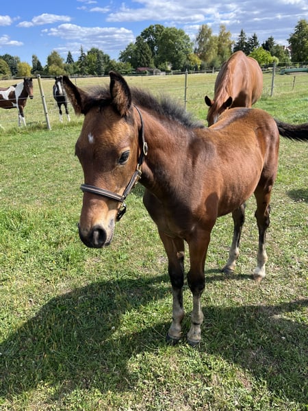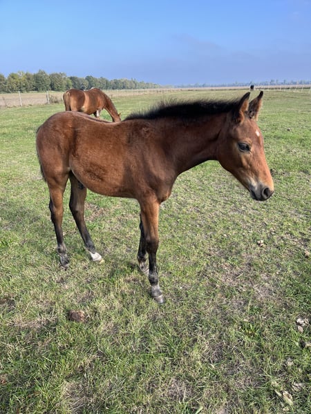 For sale is this charming, typy Diamantenglanz colt, born at the end of May 2025. He has an elastic movement and a good walk. The Warendorfer stallion Diamantenglanz is currently in training with Helen Langenhagenberg. He was licensed in 2021 in Vechta and has already won multiple young horse competitions. The mother, Look and Pay (1.65m), has an excellent character and is always 100% reliable. She is placed in dressage at S level and has competed up to S** level. Her mother, Lasenja, has been active internationally in show jumping at 1.50m. The colt is wormed and is already familiar with a halter. Loading onto a trailer was no problem, and he did great with it. The colt can be viewed at any time.