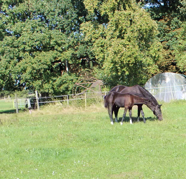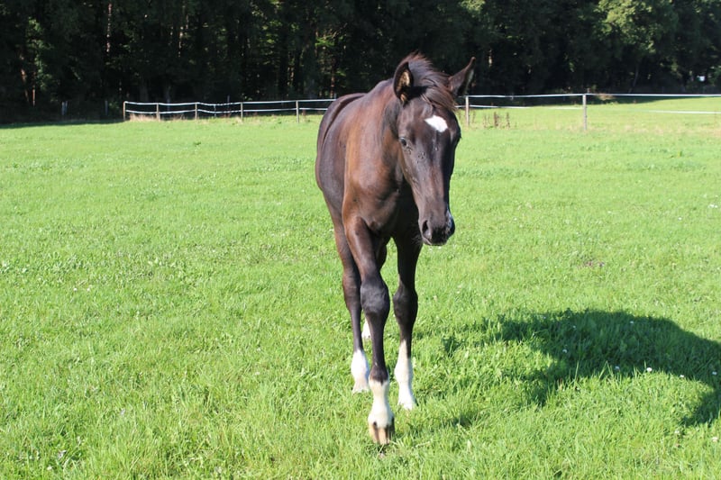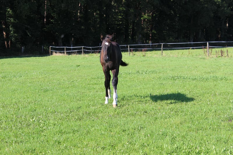 **Sales Advertisement:** For sale is a promising Oldenburg stallion, born in 2025. This elegant black horse impresses with his appealing stature and harmonious movement. The stallion shows great potential. His excellent basic gaits and balanced temperament make him an ideal partner for ambitious riders who are looking for a talented sport horse. He is well-mannered and easy to handle. If you are interested or have any further questions, please feel free to contact me. Visit us and see for yourself this wonderful stallion!