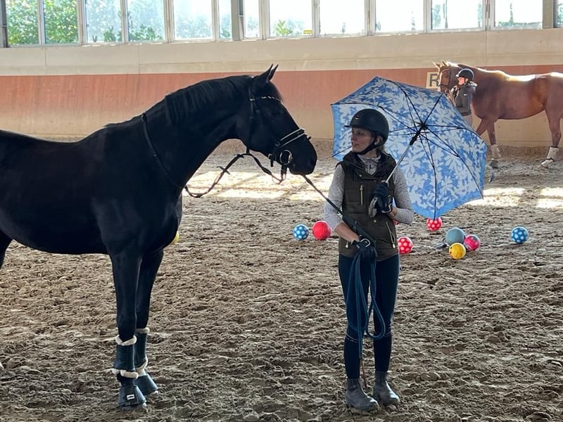 I am looking for a new home for my gelding Samy. He has been with me since he was 4 years old and is super sweet and easy to handle. Whether it's loading, farrier visits, or bringing him out, he is always reliable. I am looking for someone who primarily enjoys trail rides or groundwork, as Samy unfortunately has vertebral issues in his back and should not be used for sports anymore. However, he is always very well-behaved when ridden. Since he has been with me, he has spent summers during the day in a group on the pasture and winters in the paddock. I can imagine that he would also do well in an open stable, as he is very social and tends to be lower in the hierarchy. If you are interested in getting to know this sweet guy, feel free to send me a WhatsApp: 017695497044.