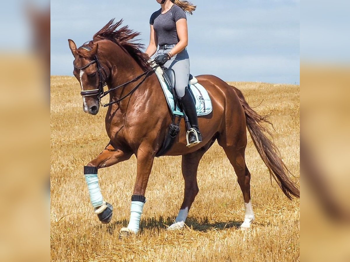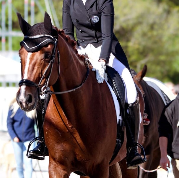 For sale is a 10-year-old Oldenburg gelding by For Romance I OLD out of Dimaggio, with a height of approximately 17.6 hh. Bred in a top breeding program, he is a full brother to the licensed stallion For Final OLD, who has sired several approved sons and is successfully competing up to Grand Prix level. In dressage, he is confidently competing at M-level. He already performs flying changes in series, putting him well on the way to his first S-level tests. As a true all-rounder, he handles cross-country jumps very confidently, including water crossings and water exits, and he even enjoys taking a bath in the lake. He has also participated in show jumping competitions and occasionally enjoys free jumping, although he has not been formally trained in this discipline. He regularly goes out in the terrain and appreciates the variety. He is the perfect schoolmaster for those looking to approach the lessons of M/S level or simply seeking a fantastic horse that brings a smile to your face every day. A reliable partner for ambitious leisure riders or show jumpers searching for a versatile horse with a solid training background. Further information, photos, and videos available upon request.