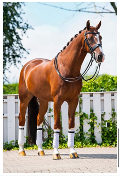 ✨ Geldo de clase junior de 2015, de color castaño, de la raza Oldenburg, en venta ✨ Actualmente compite con éxito en el nivel Junior/St. Georg y se encuentra en entrenamiento para Inter I/II. También muestra un gran talento para el paso y la piaffe. Cuenta con mucha experiencia en competición en las clases juveniles, habiendo obtenido orgullosamente puntuaciones de hasta el 69 %. Es probado, fiable y siempre da lo mejor de sí en el ring. Con sus tres pasos muy buenos, su movimiento natural y su presencia elegante, es un placer verlo y aún más disfrutarlo montando. Es cómodo de montar y fácil de manejar (muy suave en la rienda simple y acostumbrado a ser montado con doble rienda), lo que lo convierte en un compañero perfecto tanto para jinetes amateurs ambiciosos como para jinetes profesionales. Tiene buenas maneras, es fácil de cepillar y manejar (herrador/transporte), está acostumbrado a pasear y a ir al picadero y paddock todos los días. Sin vicios. Está listo para hacer brillar a su próximo jinete, ya sea que busques un compañero de competición confiado o un amigo de confianza para disfrutar cada día.