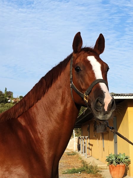 Winzton de CT, Oldenburger Wallach, geboren 2015, ca. 1,67 m. Vater: Governor, Mutter: SWB-Stute von Bourbon. Direkt vom Züchter zu verkaufen. Winzton ist ein absolut beeindruckendes Pferd mit viel Charisma. Er hat stets die Ohren nach vorne gerichtet und liebt Streicheleinheiten sowie Küsse im Stall. Seine Bewegungen sind sehr gut, mit viel Kraft in den Hinterbeinen, stets bergauf geritten und mit einem gleichmäßigen Rhythmus. Derzeit auf Dressur Niveau Klasse 3 + beginnt mit fliegenden Wechseln. Standort in Spanien, 15 Minuten vom Flughafen Alicante entfernt. Piro negativ.