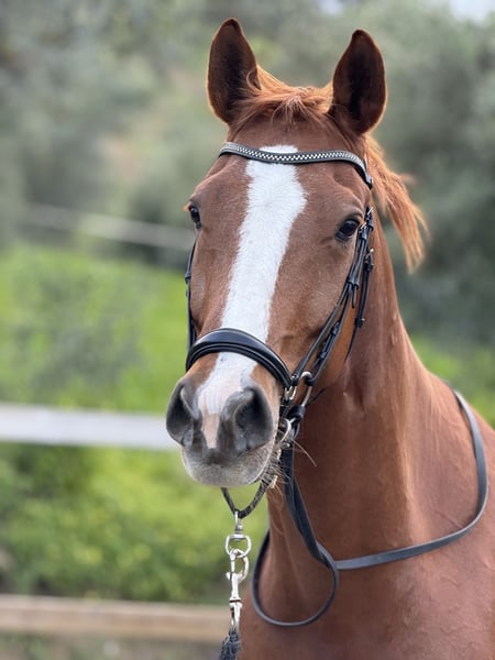 Winzton de CT, caballo de la raza Oldenburg, gelding nacido en 2015, aproximadamente 1,67 m. Hijo de Governor y una yegua SWB por Bourbon. Se vende directamente por el criador. Winzton es un caballo absolutamente impresionante, con mucho carisma. Siempre tiene las orejas hacia adelante y le encanta recibir caricias y besos en el establo. Tiene movimientos realmente buenos, con mucha potencia en sus patas traseras, siempre con una postura uphill y un buen ritmo. Actualmente compite en nivel 3 de doma clásica y ha comenzado a aprender cambios de pie. Ubicado en España, a 15 minutos del aeropuerto de Alicante. Piro negativo.