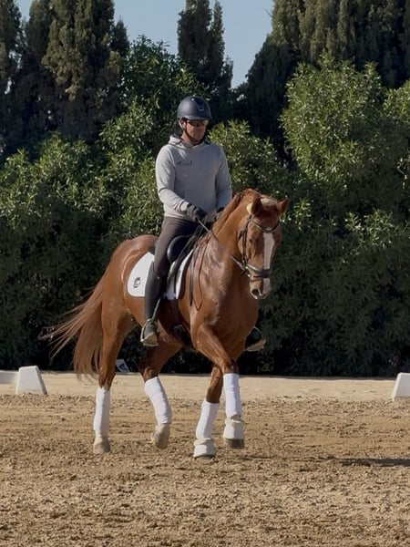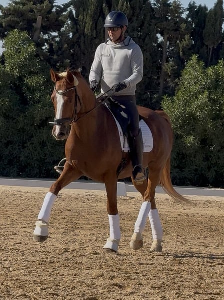 Winzton de CT, OLD gelding born 2015 and ap. 167 cm. By Governor and a SWB mare by Bourbon. For sale directly from the breeder. Winzton is an absolutely stunning horse with a lot of charisma. He always has his ears forward and loves cuddles and kisses in the stables. He has really good movements with a lot of power in his hind legs, always uphill and with a good rhythm. Currently at level 3 dressage + started flying changes. Located in Malaga, Spain. Piro negative.