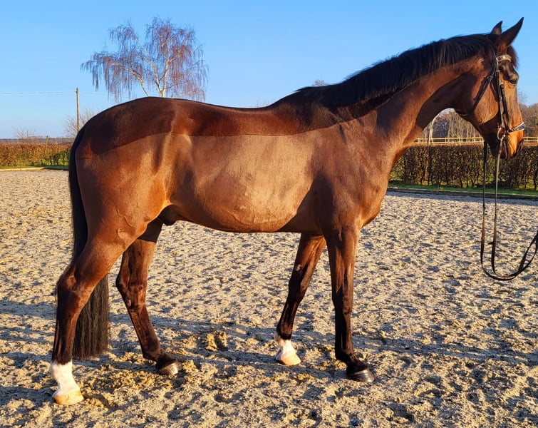 Freddy ist ein 2015 geborener dunkelbrauner Wallach von Don Frederic - Siegerhit - Donnerhall und ist ca 176 cm groß. Er ist ein sehr freundliches Pferd mit drei überaus tollen Grundgangarten was einem ein wirklich schönes Reitgefühl vermittelt. Er lässt sich gern betüddeln und beschmusen, ist auch sehr verträglich mit anderen Pferden und genießt den täglichen Weidegang. Aufgrund seiner Größe ist er relativ spät entwickelt und hat dafür in jungen Jahren die nötige Zeit in der Ausbildung bekommen. Er ist bei uns geboren und ausgebildet, nun suchen wir ein schönes neues 4* zu Hause für ihn mit tollen Haltungsbedingungen. Wir sehen ihn nicht als Anfängerpferd.