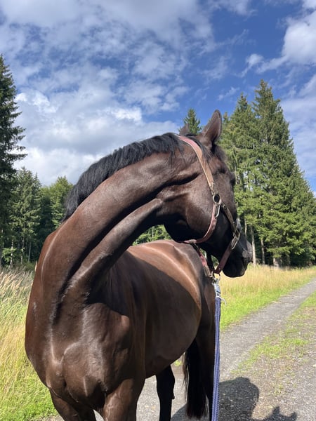 Dark Chocolate genannt „Schoki“ ist ein Charakter- und ausdrucksstarker Wallach mit viel Herz. Er hängt an seinen Menschen, wenn einmal sein Vertrauen erarbeitet wurde - deshalb ist er auch maximal ein 1-2 Personen Pferd, viele verschiedene Menschen stressen ihn. Schoki kann sehr eigen sein, er braucht im Umgang Menschen die pferdeerfahren sind & sich auch durchsetzen können, sonst testet er und versucht die Führung zu übernehmen. Zwar auf keine böswillige Art (er hat in meinen 8 Jahren Besitz nie getreten, gebissen o.ä.), aber genau deshalb sind Menschen, die auch Bodenarbeit und Horsemanship kennen wichtig, sonst versucht er alles zu überwachen und wird sehr umweltorientiert, kann sich nicht entspannen etc. Mit anderen Pferden ist er stets freundlich, geht Konflikten eher aus dem Weg, in kleinen Herden ist er ranghoch (1./2. Stelle), er ist in Ställen stets bei Mensch und Pferd beliebt aufgrund seiner freundlichen, neugierigen & menschenbezogenen Art. Aktuell steht er in einer kleinen Wallach-Offenstallherde mit großem Auslauf und heu ad libitum. Die Haltung ist auf Asthma abgestimmt (bedampftes Heu, Solekammer, staubarmes Einstreu in Unterstand) da er equines Asthma hat. Er sollte entweder in einer kleinen (max 6 Pferde) Herde oder Paddockbox mit 10h Auslauf stehen, an etwas anderes wird er nicht abgegeben. Er braucht seinen Auslauf und wird in reiner Boxenhaltung / bei zu wenig Auslauf apathisch und unzufrieden. Er steht aufgrund eines Befundes an den Vorderbeinen seit 2024 in Frührente. Schoki ist austherapiert und soll auch NICHT mehr angeschoben/weiter therapiert werden, er darf noch Bodenarbeit machen, ab und an longiert werden & Spazieren gehen. Er wird NICHT als Reitpferd, auch nicht als Freizeitpferd verkauft. Deshalb wird er als Beistellpferd mit der Möglichkeit zu regelmäßiger Bodenarbeit und mentaler Beschäftigung verkauft. Ohne Bodenarbeit wird ihm schnell langweilig, er mag in der Hinsicht noch sehr gern etwas arbeiten, ist dabei intelligent und lernt schnell. Mit mir macht er bereits von Beginn an Bodenarbeit und kann alle wichtigen Basics + mehr. Auch hier ist er sehr fein, sensibel und zugewandt, hat Spaß und Motivation. Kommandos funktionieren sowohl auf Stimme als auch mit reiner Körpersprache. Er geht seit Jahren sehr brav und regelmäßig Spazieren. Brav beim Schmied & Verladen. Regelmäßig geimpft, entwurmt & Zähne gemacht. Zubehör Mitverkauf möglich. Platz vor Preis. Es ist kein Notverkauf, ich habe keine Eile. Ich verkaufe ihn nur wenn es wirklich passt. Zur Verfügung stellen wäre ebenfalls eine Option. Ich möchte ihn nur mit Schutzvertrag und Möglichkeit auf ein seltenes (1/2x im Jahr) Besuchen abgeben. Ich suche einen Herzensplatz für ihn, an dem er lieb gehabt wird, Kuscheleinheiten und Aufmerksamkeit bekommt. Weitere Infos gerne per WhatsApp.