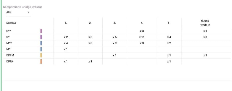 Este potente ganador de S fue comprado directamente al criador a los 4 años y ha sido entrenado de manera suave. A partir de los 6 años, fue presentado en competiciones por una jinete joven. Es un caballo de competición muy seguro, que siempre cumple con su trabajo y asegura victorias y clasificaciones. Actualmente también está entrenado para S***, pero aún no ha sido presentado en competiciones. Es un caballo muy simpático, que es completamente fácil de manejar y no tiene "manías". Se dispone de radiografías actuales sin hallazgos. ¡Un caballo para el jinete exigente que quiere disfrutar y tener éxito tanto en casa como en competiciones! ¡Para más información, estaremos encantados de responder a su solicitud adicional!