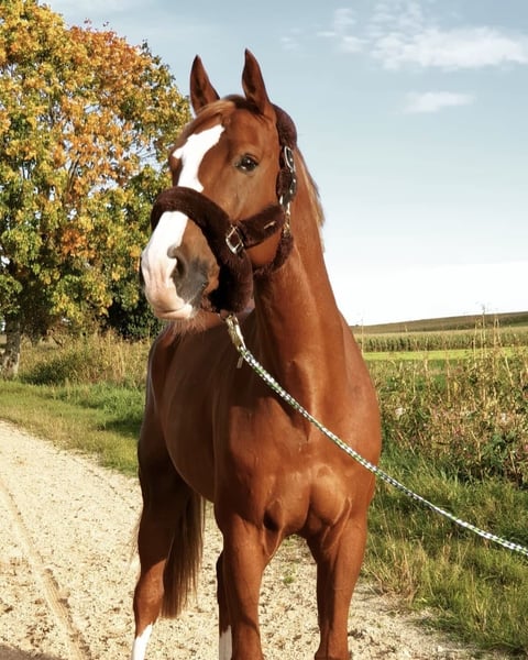 Schweren Herzens suche ich für meinen treuen Wallach *Blondie (geb. 2011)* ein liebevolles, neues Zuhause. Er war die letzten 8 Jahre mein verlässlicher Sportpartner, doch nun ist die Zeit gekommen, dass er eine neue Aufgabe und eine neue Familie glücklich macht. Blondie ist ein wunderschöner, charakterstarker Wallach mit einem ruhigen und liebevollen Gemüt. Er ist sowohl schmiede- als auch verladefromm und zeigt sich im Umgang brav. Beim Ausreiten ist er aufmerksam und wachsam, dabei aber immer zuverlässig und sicher. Da er es gewohnt ist, auch von mehreren Reitern geritten zu werden, passt er sich seinem Reiter problemlos an. Im Sport konnte ich mit Blondie in den letzten zwei Jahren zahlreiche Platzierungen in A- und L-Springen erreichen. Durch seine schöne Manier und seinen gleichmäßigen, rhythmischen Galopp überzeugt er nicht nur Reiter, sondern auch Richter – Wertnoten im 8er-Bereich waren keine Seltenheit. Für Blondie wünsche ich mir einen Platz, wo er einer jungen Reiterin oder einem Reiter (kein kompletter Anfänger) Freude am Reiten schenkt, ohne dass der sportliche Ehrgeiz an erster Stelle steht. ➡️ Preisvorstellung: 22.000€ – wobei für mich ganz klar gilt: Platz vor Preis! In dem Preis enthalten ist ebenfalls sein Zubehör: Luxus-Sattel, Trense, Decken. ➡️ Probereiten ist jederzeit möglich. Um Reittourismus zu vermeiden, erhebe ich hierfür eine Gebühr von 25 €, die selbstverständlich beim Kauf angerechnet wird. *Blondie ist ein absolutes Herzenspferd und wird nur in die allerbesten Hände abgegeben.*