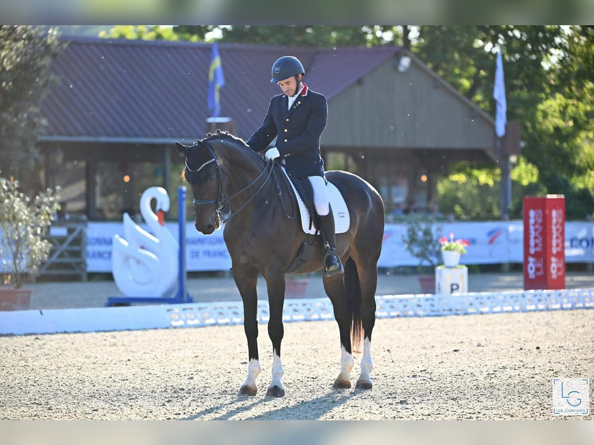 Nous vous présentons Sunny, un superbe hongre Oldenbourg de 13 ans, mesurant 1m75, alliant puissance, confort et élégance. Sous sa belle allure de cheval moderne se cache un partenaire généreux, curieux et profondément gentil, qui a déjà prouvé sa fiabilité sur les carrés de dressage.Issu de lignées allemandes réputées, Sunny hérite de la force et du cadre de Santander H (Sandro x Contender), combinées à la souplesse et la qualité de sa lignée maternelle par Maraschino. Un croisement équilibré, donnant un cheval expressif, avec du rebond et une belle intelligence de travail. Expérience et niveau de travail, Sunny travaille principalement en dressage, avec une très bonne base technique et une attitude sérieuse sous la selle.Il maîtrise les mouvements de l’Amateur 1.Il aborde le travail de l’Amateur Élite (A9/A10), qu’il a déjà engagé une fois 3ᵉ du Sud Dress Tour en Amateur 2 l’année dernière. Peu sorti cette saison (propriétaire en congé maternité), mais parfaitement entretenu et disponible à la reprise du circuit. Il dispose de trois bonnes allures naturelles : Pas : ample et régulier Trot : souple et expressif Galop : équilibré, montant, agréable à travailler Bien qu’orienté dressage, Sunny saute également : il a été travaillé jusqu’à 1m10 à la maison (avec une demi-pension), démontrant un beau coup de saut. Il part en extérieur seul ou accompagné, et a même déjà été monté en licol et cordelette.C’est un cheval agréable, proche de l’homme et très curieux, toujours volontaire au travail. Il peut toutefois se montrer émotif avec un cavalier manquant d’assurance : il ne fait jamais de gestes dangereux, mais peut être un peu regardant ou faire demi-tour par réaction. C’est pourquoi il conviendra mieux à un cavalier calme et posé, aimant les chevaux sensibles et expressifs. Sunny est Gentil aux soins (même s’il bouge un peu par impatience)- Facile à transporter (van, VL, PL)- Ok tonte, maréchal, ostéo, dentiste. Habitué du box et de la vie au pré Le seul point à noter : il peut se montrer un peu dépendant d’un autre cheval en déplacement lorsqu’il voyage accompagné, mais reste calme et concentré lorsqu’il voyage seul. En résumé: Un hongre Oldenbourg de 13 ans, fiable et généreux, au niveau Amateur 1 confirmé, prêt à évoluer vers Amateur Élite. Parfait pour un cavalier souhaitant se faire plaisir en dressage, avec un cheval expressif, sensible et complice, tout en pouvant varier le travail (saut, balade, cordelette).Un vrai cheval de cœur, polyvalent, respectueux et bien éduqué, qui saura combler un cavalier souhaitant progresser dans le confort et la confiance.