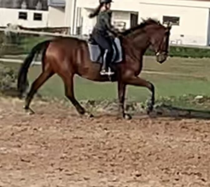 An impressive Oldenburg gelding is for sale. This handsome bay impresses with a height of 178 cm and is a real eye-catcher. He is always decent when ridden, can be relied upon to go out alone or in a group, and also enjoys jumping a small course (also with a dressage rider). His dressage training level is M-ready (unfortunately the videos are a little older). With his excellent training and elegant appearance, he is the ideal partner for any ambitious rider. Due to his pedigree-appropriate - always adjustable - go, he is also ideal for an eventing rider. He is well-behaved and knows his way around a horse walker, paddock and paddock. If you are looking for a talented and experienced riding horse that is convincing both in the arena and in everyday handling, then he could be just the right horse for you. Here is a youtube link: https://www.youtube.com/watch?v=mZDy4KLL4hg For further information and to arrange a viewing appointment, please contact us.
