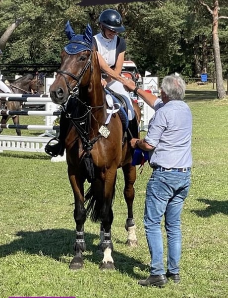 Se ofrece a la venta un hijo de Kannan, criado y entrenado por su propio dueño. Es un caballo con buen carácter, bien preparado y con un trote cómodo. Ha saltado hasta 1,50 m y cuenta con numerosas clasificaciones por encima de 1,45 m. A pesar de su tamaño, es fácil de montar, incluso para niños. Es muy amigable en su trato, con el herrador, el veterinario, en el grupo de caballos, durante los paseos y en concursos. En resumen, un compañero excepcional. Para más información, no dude en contactarme por teléfono o WhatsApp.