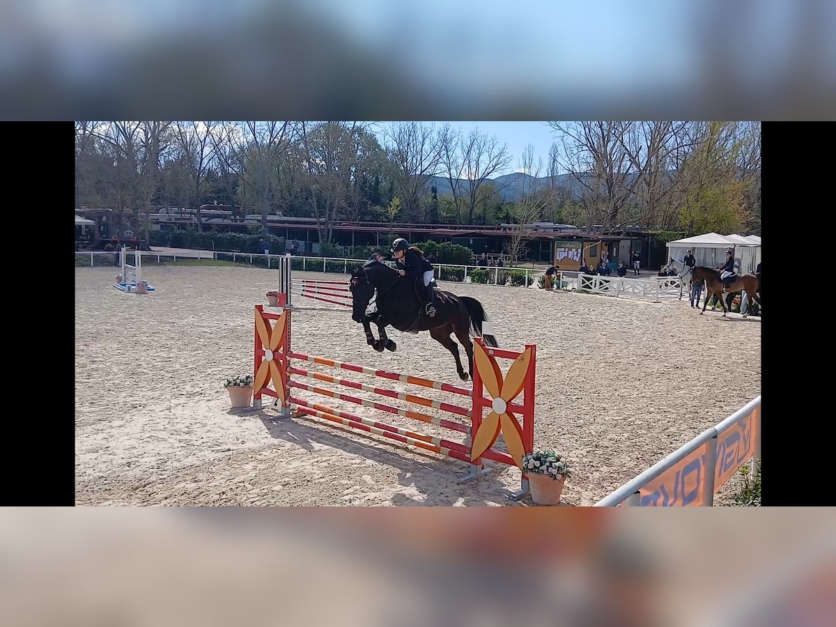 Oldenburger, 178 cm at the withers, with a heart of gold. Has competed up to 135 cm in Germany and up to 115 cm here in Italy with me, without any issues. Excellent work ethic, can stay calm in the flat and is suitable for turnout in the paddock.