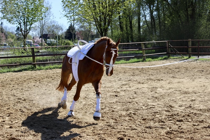 Chuck ist 16 Jahre alt und 185cm groß. Seit meiner Schwangerschaft/ Geburt meines Sohnes werde ich ihm leider gar nicht mehr gerecht und deshalb suche ich einen guten Platz für ihn. Chuck ist ein sehr liebes, fast immer gelassenes Pferd. Wenn er etwas nicht mag (neue Waschboxen, enge Türen ..) oder etwas Neues sieht bleibt er erstmal stehen und bewegt sich nicht vom Fleck. Bei Wind & Regen kann er manchmal an der Hand etwas aufmüpfig werden, unterm Sattel bleibt er ruhig. Mit 5 Jahren wurde er von meinem ehemaligen RV als Voltigierpferd gekauft und für ein L/ M* Team ausgebildet, für das er bis 2022 lief. In der Zeit wurde sein Knie 2x mit Kortison behandelt und dann entschieden, dass er für den Turniersport nicht weiter geeignet ist. So habe ich ihn übernommen. Sein Knie wurde 5x mit IRAP behandelt. Seitdem wird er gymnastiziert, longiert und etwas (aus)geritten. Platz vor Preis