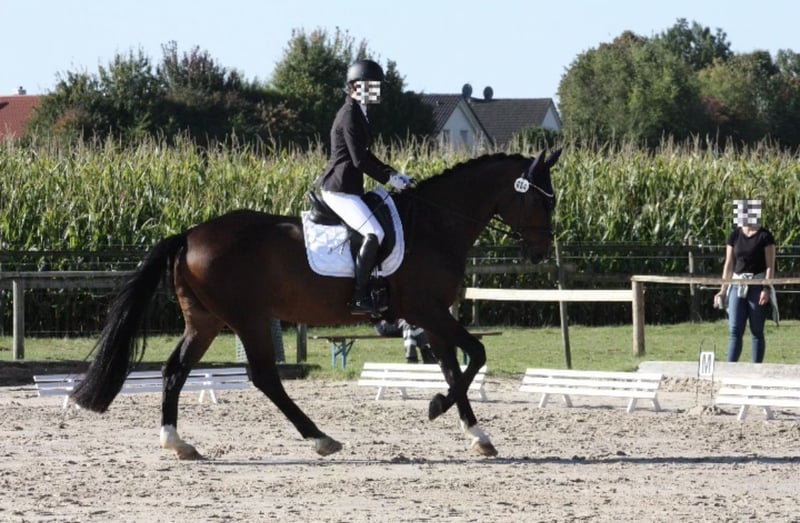 Aus privaten Gründen verkaufe ich mein Herzenspferd. D. ist ein 17 Jähriger Oldenburger Dressur Wallach mit einem Herz aus Gold. Es handelt sich hierbei nicht um einen Notverkauf, daher Platz vor Preis und nur in die allerbesten Hände abzugeben. Ausbildungsstand Dressur: M Springen: kein Springpferd, jedoch meistert er kleinere Sprünge / Parcours sicher und mit Spaß, auch wenn es mal nicht 100% passt bleibt er entspannt. Gelände: absolut Gelände sicher, neue Situationen schätzt er klar ein und meistert diese mutig und vernünftig Aktuelle Videos, die seine Qualität und sein Vermögen zeigen, sende ich auf Anfrage gerne zu (geritten von einer anderen Person, daher aus Datenschutzgründen nicht öffentlich). Abstammung: tbd Charakter: Verträglich mit anderen Pferden (Koppel, Paddock etc.), entspannt, zugewandt, kommunikativ, wird gerne gekraul. Mutig, immer leistungsbereit, möchte dem Reiter gefallen. Sonstiges: Spaziergänge im Freien kennt er Laufband und Führmaschine bekannt Paddockhaltung bekannt Koppel führen anständig Kleinere Turniere kennt er und geht gelassen mit unbekannten Gegebenheiten um. Er wird aktuell ambitioniert geritten und ist voll im Training. Er ist brav im täglichen Umgang, schmiede- und verladefromm. TÜV: nicht vorhanden, AKU vor 3 Jahren altersgemäß oB, seither keine Verletzungen oder sonstige Schäden bekannt Impfungen aktuell, regelmäßig entwurmt Ausrüstung nicht im Preis inbegriffen, kann optional dazu erworben werden. Alles in sehr guten fast neuwertigen Zustand (Sattel, Trensen, Decken, Schermaschinen usw.). Für das Probereiten veranschlage ich 30€, dies wird beim Kauf selbstverständlich verrechnet. Keine Händler, kein Schulbetrieb Standort: 73642 Welzheim Baden-Württemberg