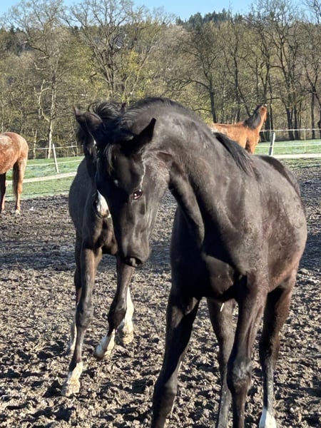 Magnifique étalon noir with quatre fois blanc