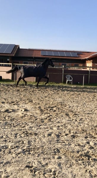 Oldenburger Wallach (2006, 170 cm, Rappe) Schweren Herzens suche ich für meinen Oldenburger Wallach ein neues Zuhause. Er ist 2006 geboren, 170 cm groß und ein super menschenbezogener und zuverlässiger Partner. Da ich aus beruflichen Gründen weggezogen bin, fehlt mir leider die Zeit, ihm gerecht zu werden. Er ist bis M-Dressur ausgebildet und bis L-Dressur platziert. Auch wenn er aktuell nicht im Training steht, beherrscht er die Lektionen noch sicher und lässt sich jederzeit wieder motivieren. Er hat keinerlei körperliche Beschwerden und genießt es, wenn man mit ihm arbeitet. Er ist *kein* Anfängerpferd für die Dressur, da er korrekt und fein geritten werden will und nicht leicht zu sitzen ist. Das Schöne an ihm: Er muss nicht zwingend dressurmäßig gefördert werden. Er ist ein unglaublich vielseitiges Pferd, das einfach Freude am Miteinander hat. Er ist im Gelände verlässlich und unerschrocken. Er liebt aber auch Bodenarbeit, Stangenarbeit und Trailaufgaben. Er eignet sich daher genauso gut als Freizeitpartner oder auch nur als Beisteller, da er durch die Offenstall-/Herdenhaltung sozial sehr verträglich ist. Mein Wunsch für sein neues Zuhause: - Offenstallhaltung - liebevolle Besitzer mit Pferdeverstand & Erfahrung