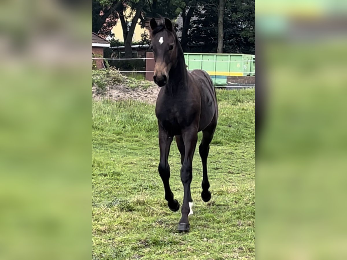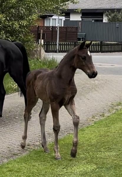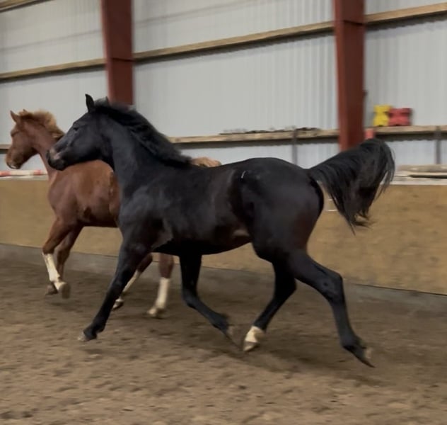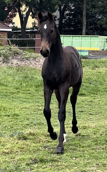 Due to herd reduction and a change in breeding plans, I am offering this absolute gem for sale. Elvis will turn two years old in March and comes from my own, carefully bred mare. He was foaled approximately three weeks ago and is within the middle frame size. Estimated full height is around 1.65 m, possibly slightly taller. He descends from Escolar x San Amour x Depardieu and, in addition to his excellent conformation, exhibits three very good basic gaits. He learns incredibly quickly and is very people-oriented. Elvis is sensitive, affectionate, trainable, brave, and playful. He is mentally clear and needs consistent handling. Several sport horses come from this breeding line. Two full brothers of the mare have been trained up to Grand Prix level, and one is competing at the highest international level. Regular visits to the farrier, deworming, etc., are of course maintained. This little gentleman will only be sold to a suitable, dedicated owner! Price negotiations only on-site. If interested or for further questions, please feel free to contact me. Location currently 25884. Private sale.