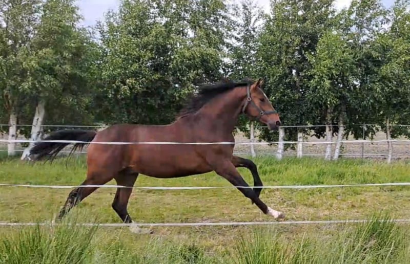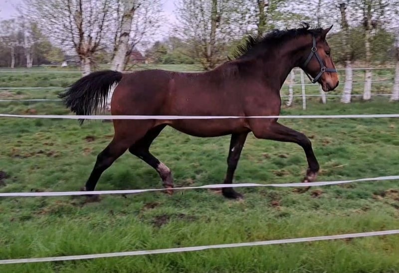 Hello, I am offering my 2.5-year-old gelding for sale, whom I bred myself. He has a striking presence and is very attentive to humans. This large-framed gelding remains remarkably calm in any situation. X-ray images of his legs are available, and he has been regularly vaccinated and dewormed. He possesses three very good gaits, with the walk and canter being particularly notable. Due to his calm and balanced nature, he will make an excellent partner for sport and leisure activities. His dam was placed in dressage horse classes A to M and has been trained up to M level. His half-brother also has several placements in dressage horse class A. She descends from Foundation and has very successful half-siblings (state premium mares), with their progeny also performing well. Additionally, she has a licensed half-brother. His sire, Faszination de Malleret, was once a Hanoverian premium stallion. He is a wonderful horse with promising future potential. Please feel free to contact me if interested.