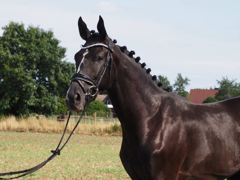 Dieser schicke lackschwarze und ausgesprochen bewegungsstarke fast 3 jährige Cafe au lait Nachkomme überzeugt auf ganzer Linie durch Qualität, Aussehen und Pedigree! Mutter selbst ist ebenfalls enorm ausdrucks- und bewegungsstark, war Elietauktionsfohlen und stammt aus einer Staatsprämienstute mit überragender SLP. Der Vater Cafe au lait, Siegerhengst seiner Körung, HLP Sieger und BuCha Finalist, war selbst siegreich in der schweren Klassen und hat sich in den letzten Jahren einen Namen als Doppelvererber mit Spitzennachzucht gemacht. So wurde Cafe's Casimir" (Cafe au lait x Calido x Grannus) gefeierte Preisspitze der Oldenburger Eliteauktion, ist bereits in jungen Jahren Seriensieger in S- Dressuren und international Intermediaire I siegreich. Stute Kasselmanns Cafe's Caletta (Cafe au lait x Calato) ist ebenfalls bereits S-Dressur platziert und international Grand Prix siegreich. Cafe's Matts (Cafe au lait x Don Frederico) wurde zweitteuerstes Dressurpferd der Oldenburger Summer Mixed Sales. Weitere Jungpferde aus springbetonten Mutterstuten sind bereits mehrfach in Dressurpferdeprüfungen A bis M platziert und sind bemerkenswert bewegungsstark und kopfklar. Dass die Cafe au lait Nachkommen im Springsport bis zur schweren Klasse überzeugen steht außer Frage, so zum Beispiel aus unserer Zucht: Cafe's Champus: gekört, Vizeweltmeister der jungen Pferde Cafe Junior: gekört, international erfolgreich in Saudi Arabien Cafe's Columbo: gekört und sporterfolgreich in Frankreich Cafe's Don Rubin: gekört, 4jährig als jüngstes Pferd Bronze beim Dobrocker Deisterchampionat, aktuell qualifiziert zum Bundeschampionat in seiner 2. Springpferde-M! Stationiert bei Paul Schockemöhle zeugte Cafe au lait schon etliche international erfolgreiche Springpferde, u.a. "Royce", siegreich im FEI CSI5* $500,000 Rolex Grand Prix Wellington. Cafe au lait selbst war unter Philipp Weishaupt Bundeschampionatsfinalist und ist bis S*** Springen erfolgreich gewesen, ist aber auch mit drei spektakulären GGA ausgestattet und dressurmäßig auf S Niveau ausgebildet worden. Unsere Fohlen bekommen täglich Mineralfutter und Fohlenstarter, regelmäßig EQUISTRO Haemolytan und Ipaligo Foal, Wurmkuren und Schmied sind natürlich ebenfalls selbstverständlich. Auch die Muttertiere bekommen die ganze Trächtigkeit hindurch spezielles Stutenfutter, täglich Saftfutter und Leinöl, sowie Heu ad libitum. So ist unsere Nachzucht stets im besten Gesundheitszustand und top im Lack! Weitere Fohlen und Nachwuchspferde aus eigener Zucht auf Anfrage. Ein Teil ist auch unter den anderen Anzeigen zu finden. Es stehen auch immer wieder einige tragende Zuchtstuten zum Verkauf. Anfragen nach Videos etc. ausschließlich vorab via WhatsApp möglich. Cafe`s Fernando verfügt bereits über aktuelle sehr gute Röntgenbilder. Da früh geboren und weit entwickelt ist er ist bereits gut longiert und an Reitergewicht gewöhnt.